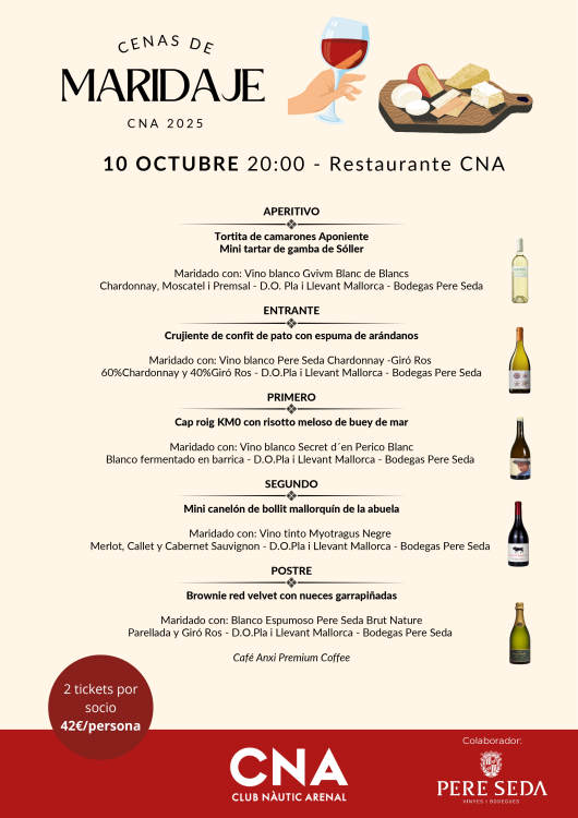 Cena de maridaje en el Restaurante CNA el viernes, 19 de Julio a las 20:00h.