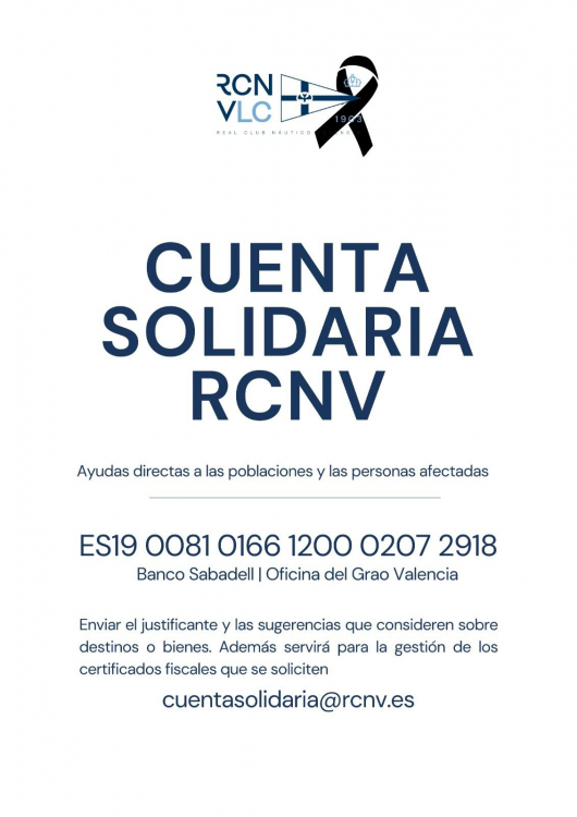 EL Club Nàutic S'Arenal ha hecho una aportación de 2.500€ del fondo solidario y del Club a la cuenta solidaria del REAL CLUB NAUTICO DE VALENCIA para ayudar a los afectados por la DANA en Valencia.