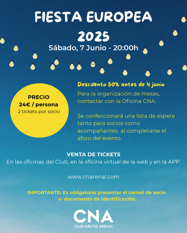 El Sábado 7 de junio, a partir de las 20.00 horas, el CNA celebra una nueva edición de la tradicional Fiesta Europea.