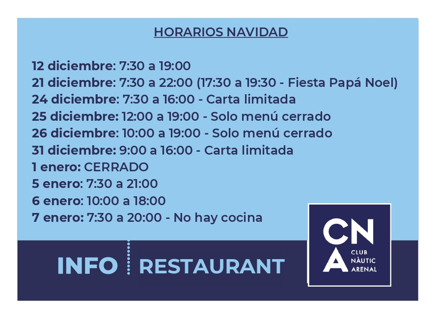 Horarios Navidad 2025 - Restaurante CNA